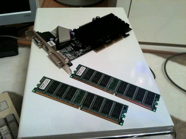 で、ふと昔使ってたパーツが余ってたなぁと思い出し探してみると、FX5200のグラボと512MBの