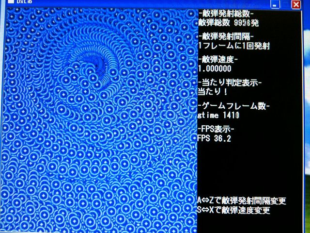 敵弾1万発表示でFPS36程度まで低下したので、まぁこんなもんかーといった印象。