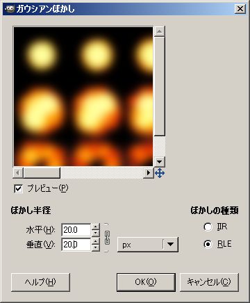 で、まずはフィルターのガウシアンぼかしを適当な数値で掛けます。