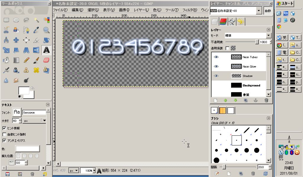 背景が邪魔ならレイヤーパネルで背景を削除すれば、アルファチャンネルを使った文字画像が