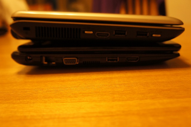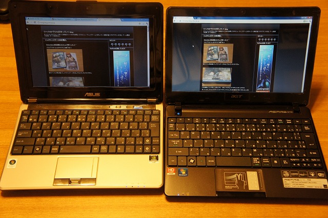 本体の大きさは殆ど同じくらい。左右の幅が若干Aspire One 722の方が大きい程度です。