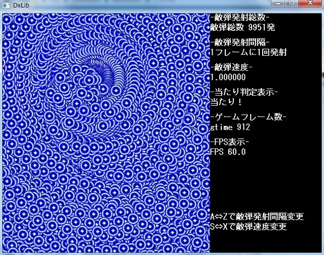 以前製作した動作速度検証プログラムだと弾1万発表示でもFPS60は余裕でした。