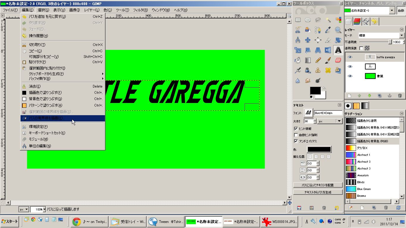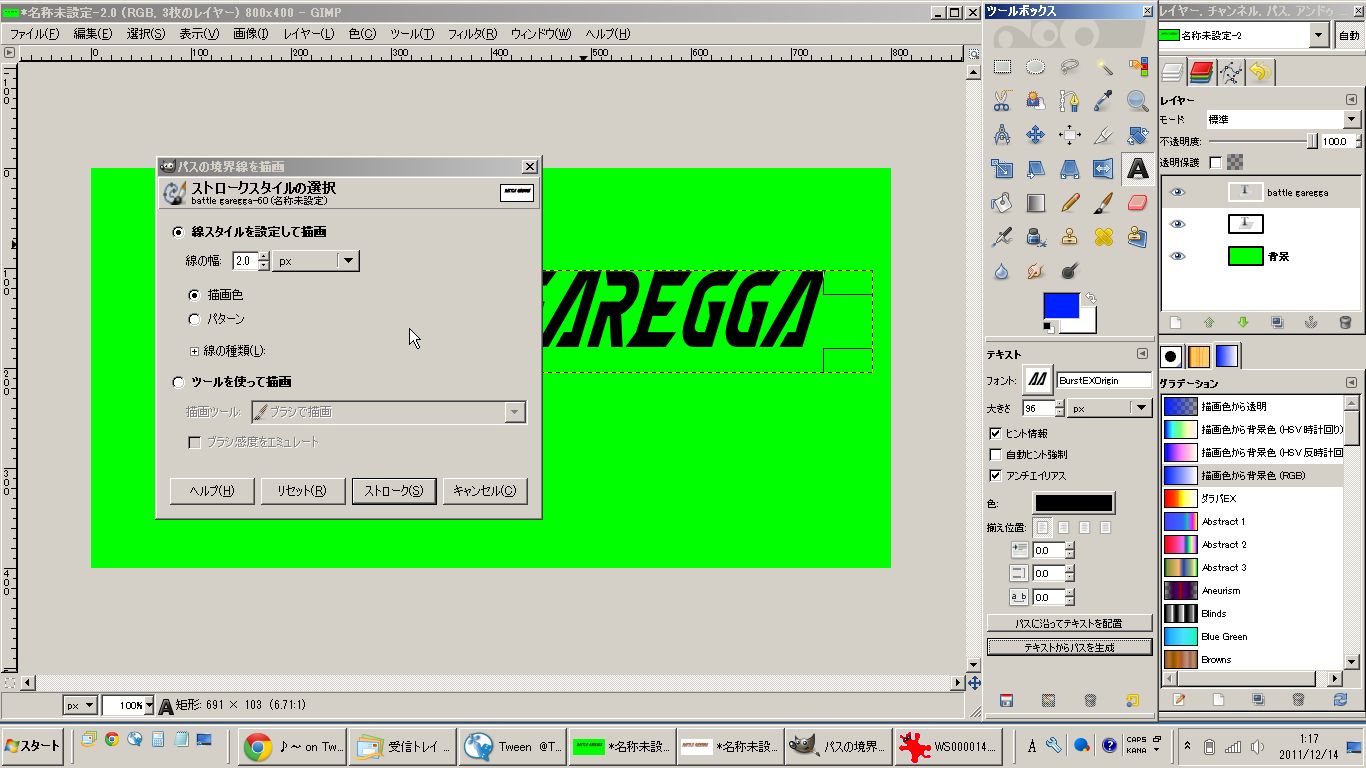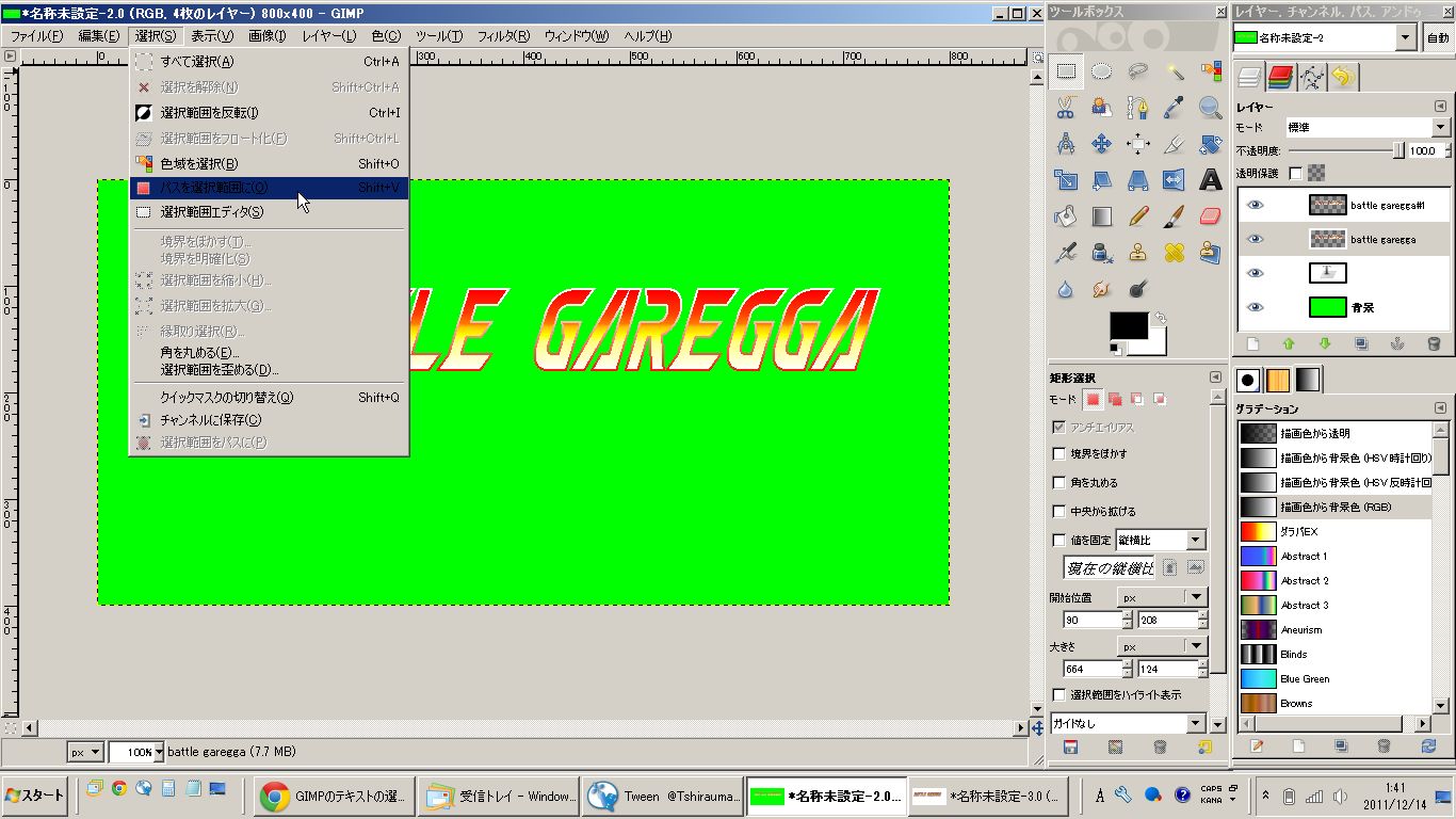 私はIllustratorを持っていませんので、紹介されていた方法を参考にGIMP2で加工してみました。