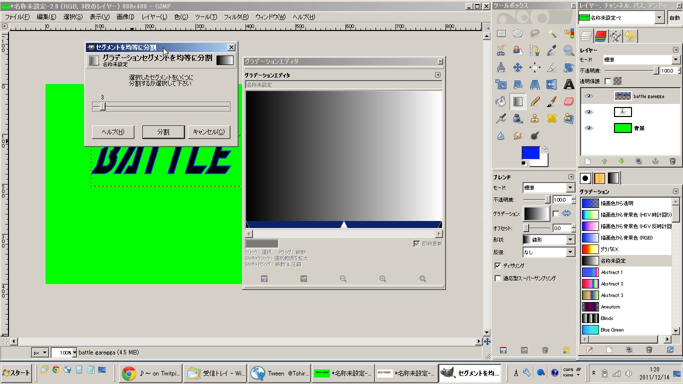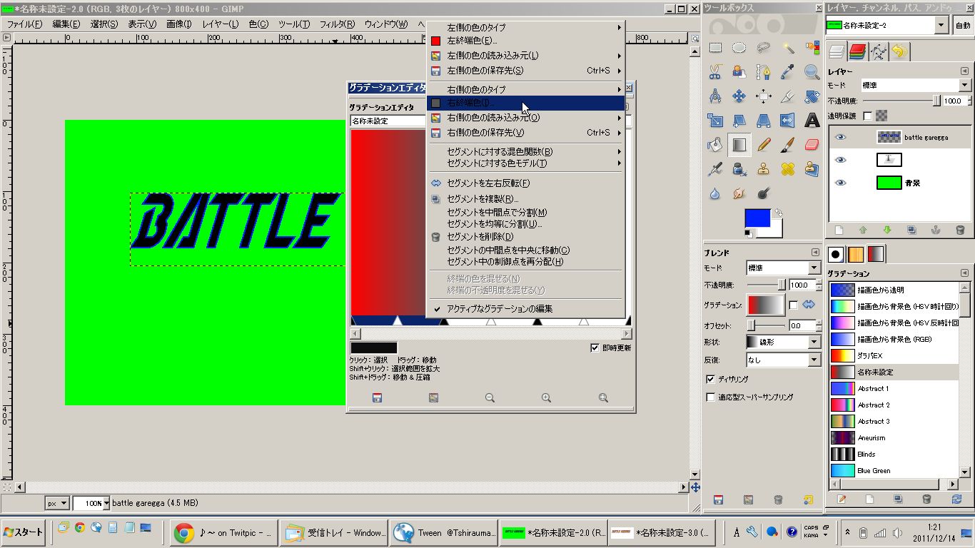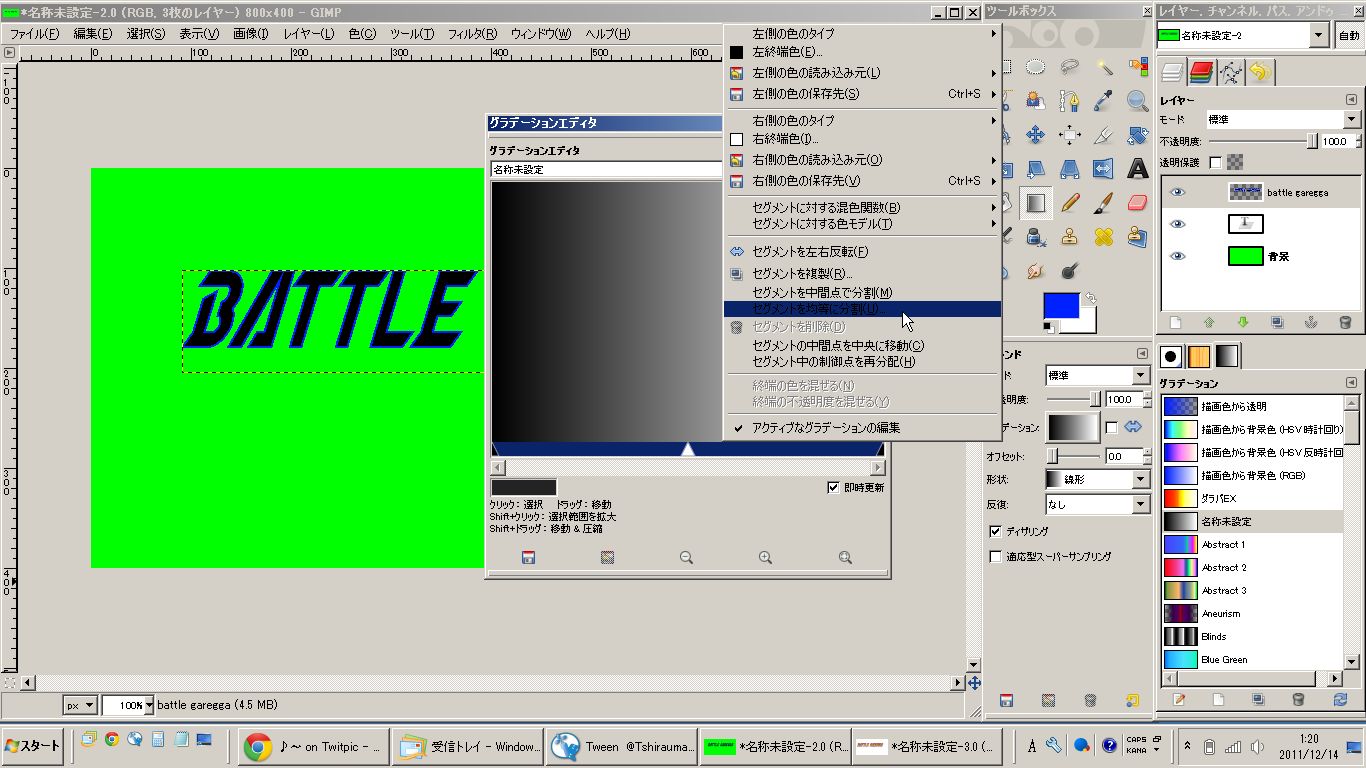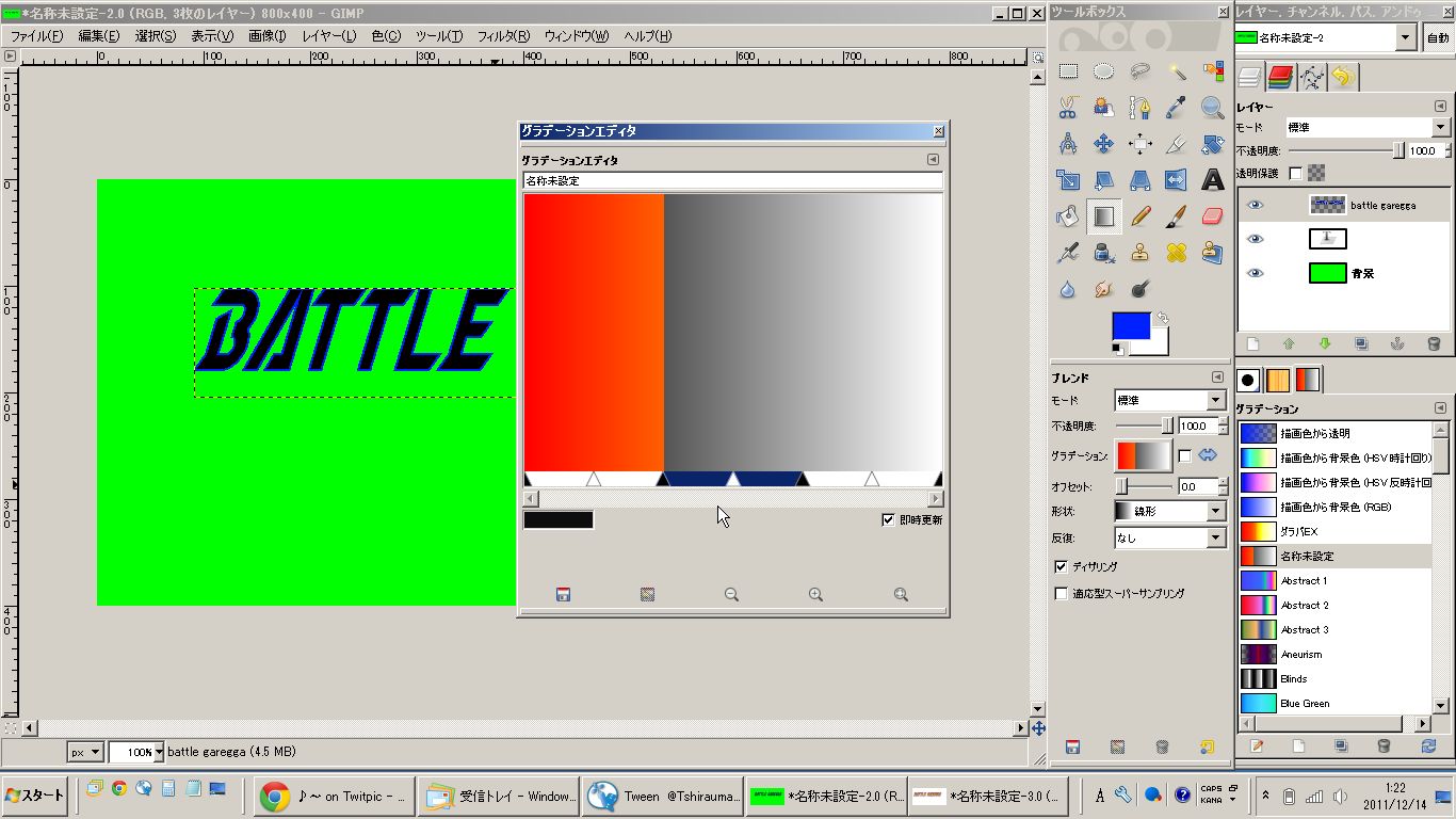 私はIllustratorを持っていませんので、紹介されていた方法を参考にGIMP2で加工してみました。
