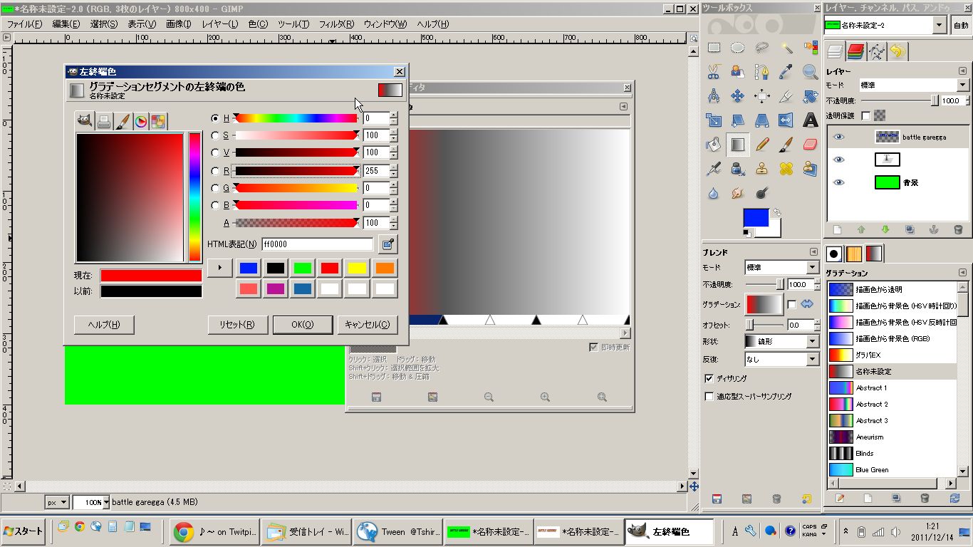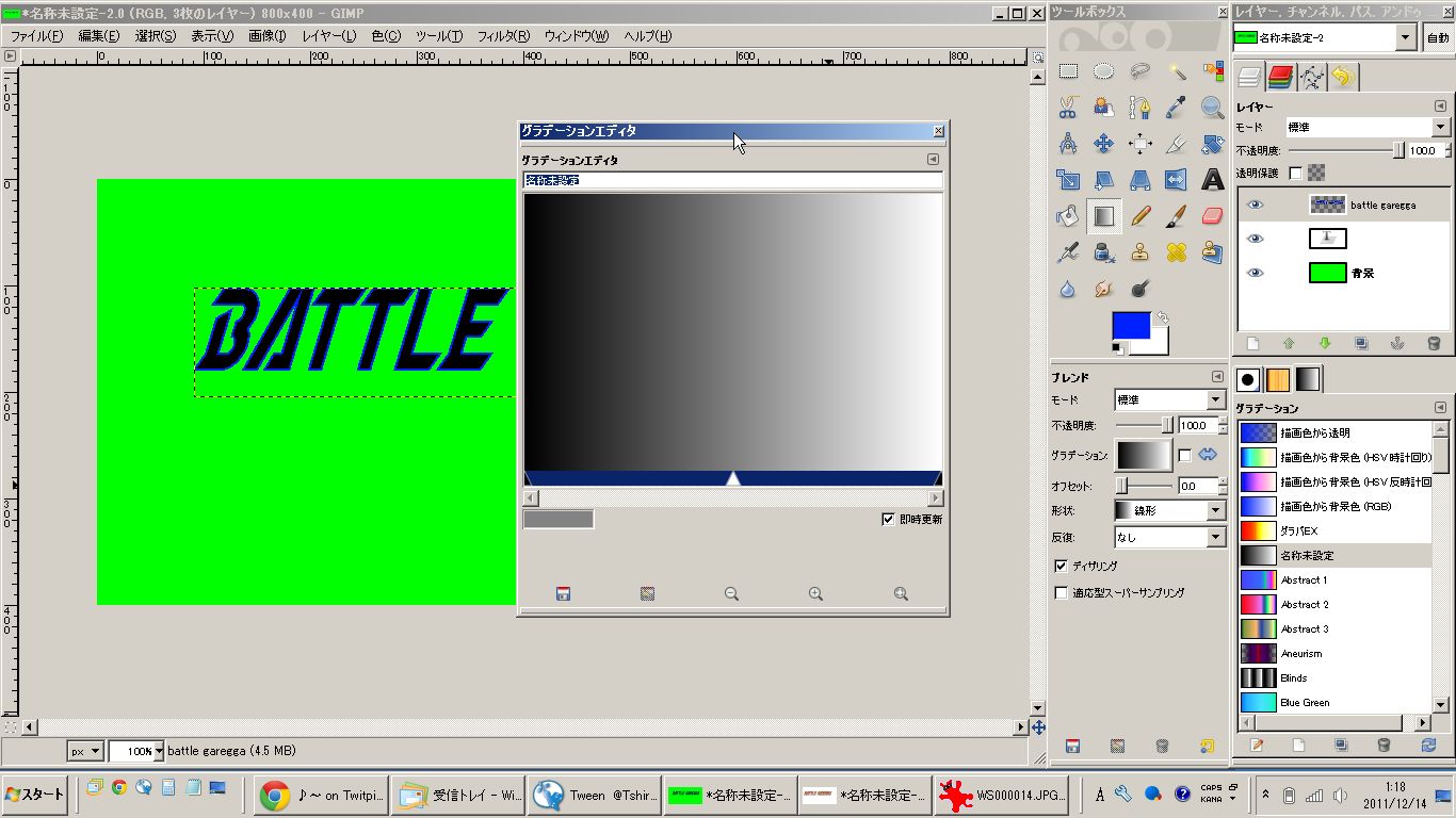 グラデーションが出来たら、ツールボックス右上の色域の選択を押してフォントの黒の部分を