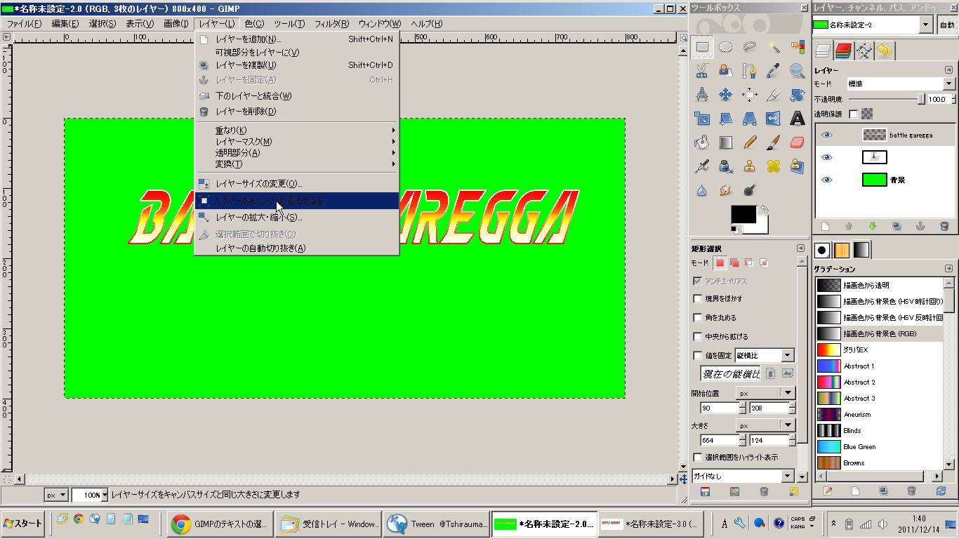 まずはメニューのレイヤー→レイヤーをキャンバスに合わせるを選択。