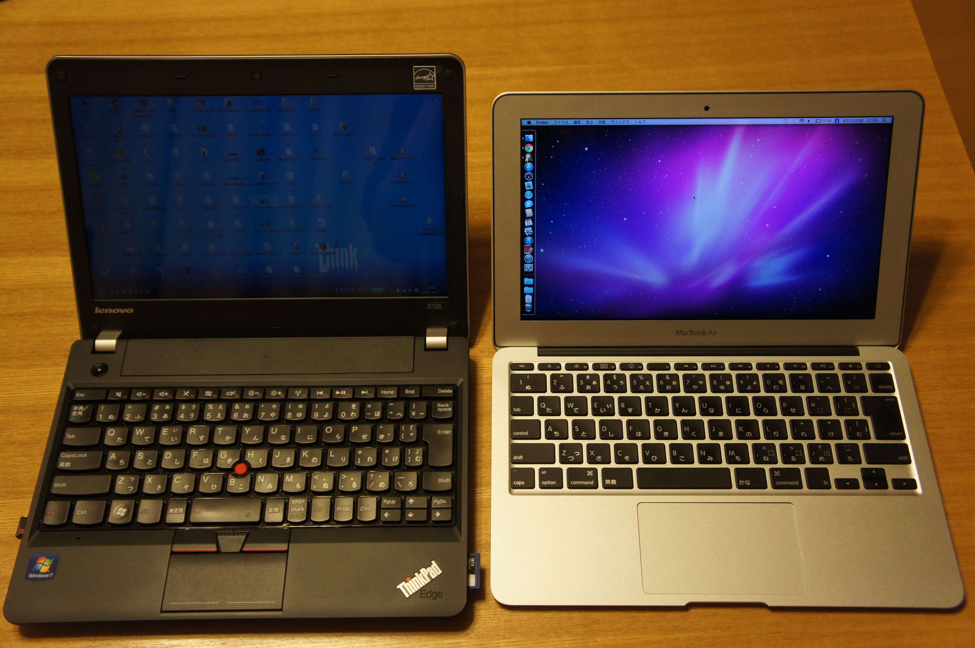 手持ちのThinkPad E135(11インチモデル)と比べてみました。