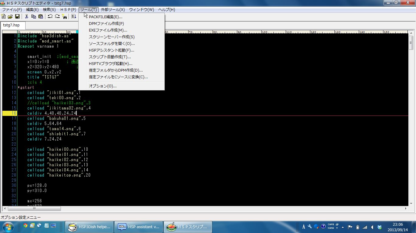もう一度HSP3Dish Helperの画面に戻ります。