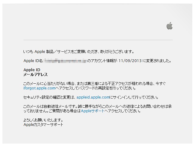 ある日メールチェックするとアップルから、こんなメールが来ました。