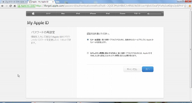 Eメール認証かセキュリティの質問に答えるかを選択するのですが