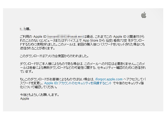 「ご利用の Apple ID による最近のダウンロードについて」