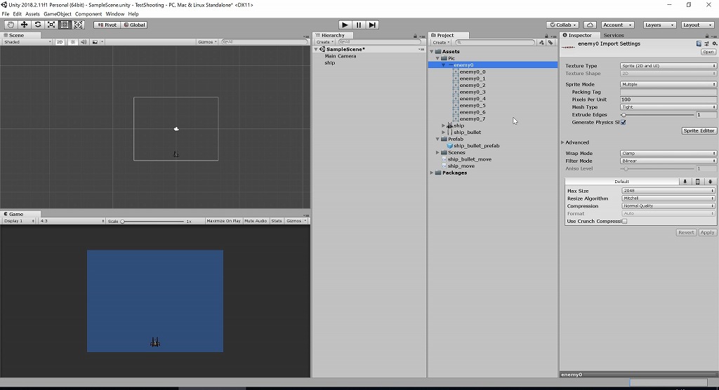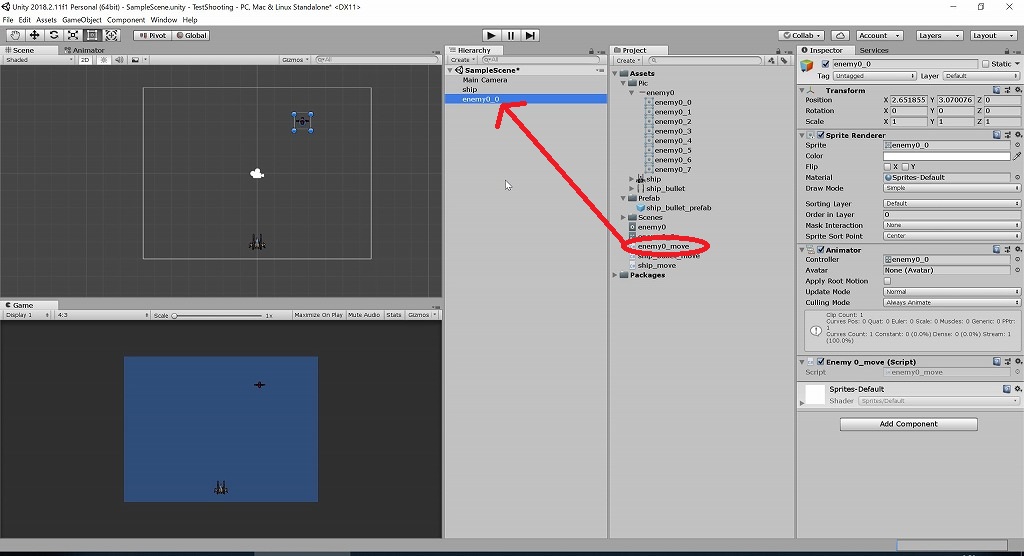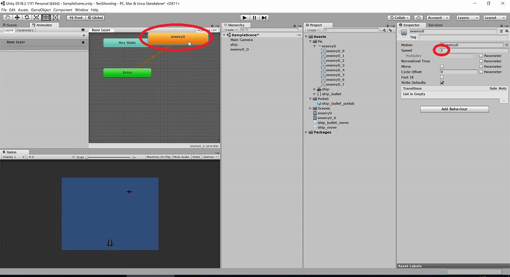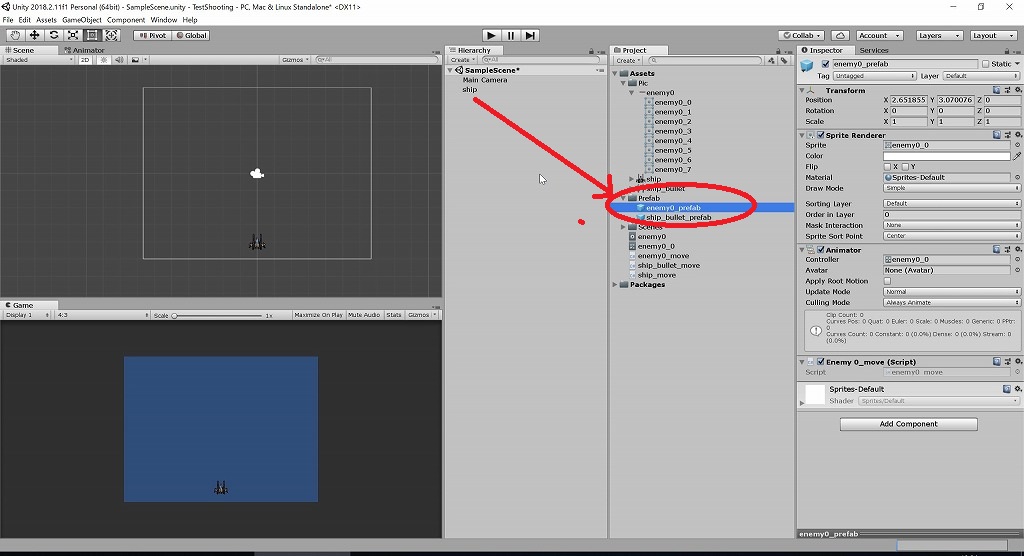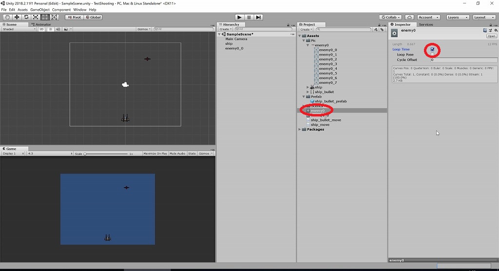 【Unity】敵のアニメーション表示と移動(プレハブ化する)【簡単な2DSTGを作ってみるNo.3】