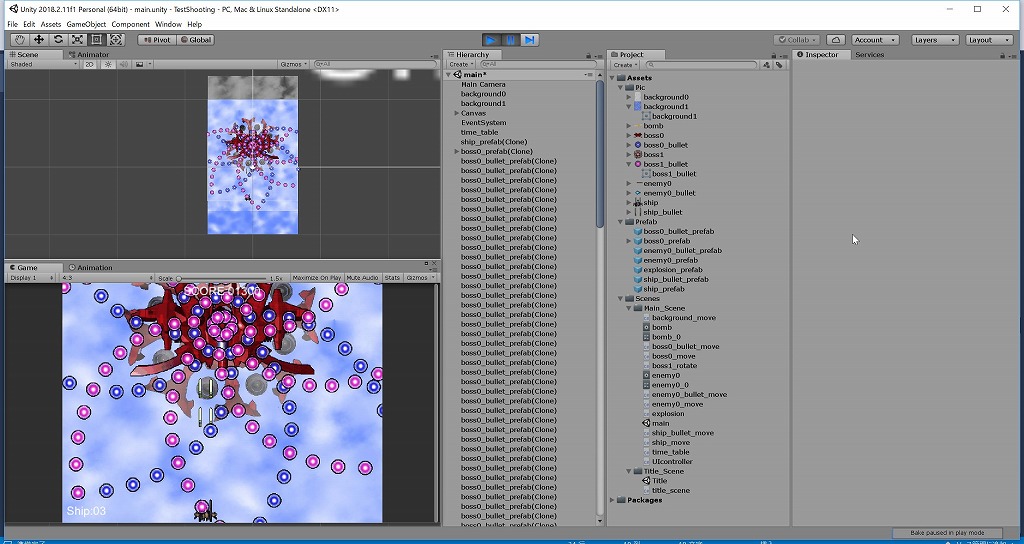最終回です。ボスを追加して弾幕を3つ作りました。