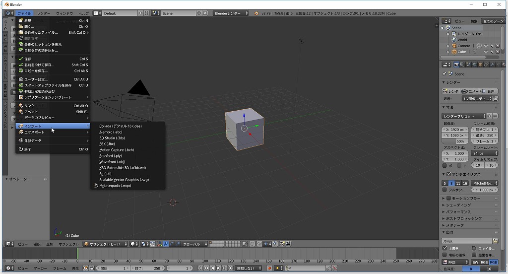 Blenderは標準ではmqoファイルの読み込みに対応していませんので、読み込めるようにプラグインをインストールします。