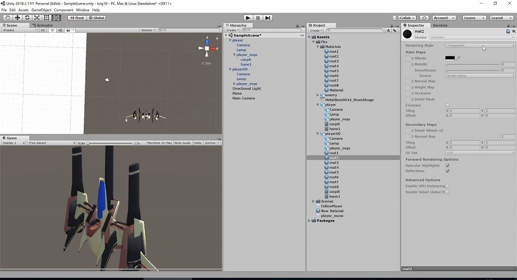 読み込んだモデルのマテリアルが半透明になってる部分があるんですよね。