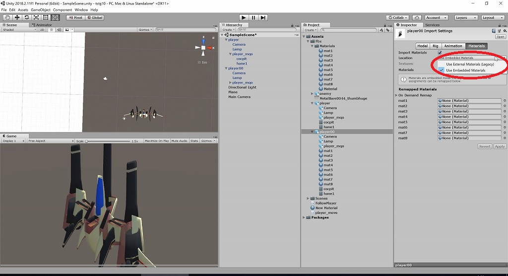 fbxで出力したらUnityで読み込むのですが、ここで問題がおきました。
