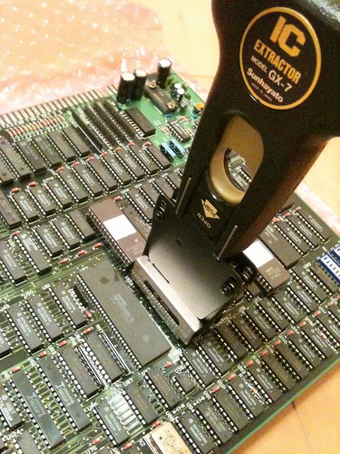 ロムを載せ替える為には基板からロムを外す必要があるのですが、慣れた人だとマイナスドライバー
