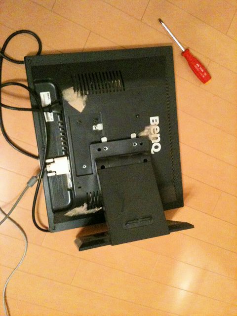 まずは手持ちのモニタを縦画面で使えるように無理やり取り付け方を変更。