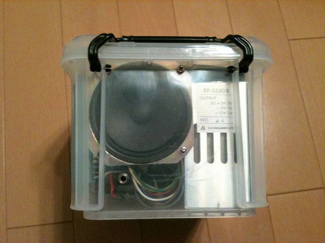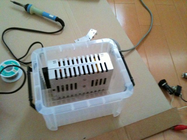 なるべくコンパクトに作りたかったので、一番大きい部品である電源の大きさ丁度くらいの箱を