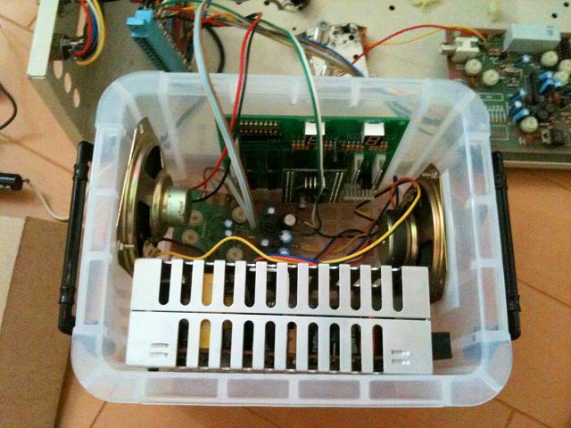 位置が決まれば、後は箱に穴を開けて部品を移植していくだけ。