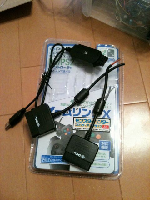 PC用のPS2変換ケーブルですが、PSコントローラの入力部分だけ使います。