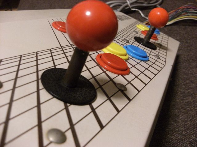 電源部分などを取り外して小さい箱に収めて、家庭用ゲーム機用のジョイスティックを繋げる